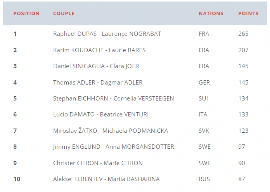Punktgleich mit einem Paar aus Frankreich, das die selben Punkte mit einem Turnier weniger erreicht hat.